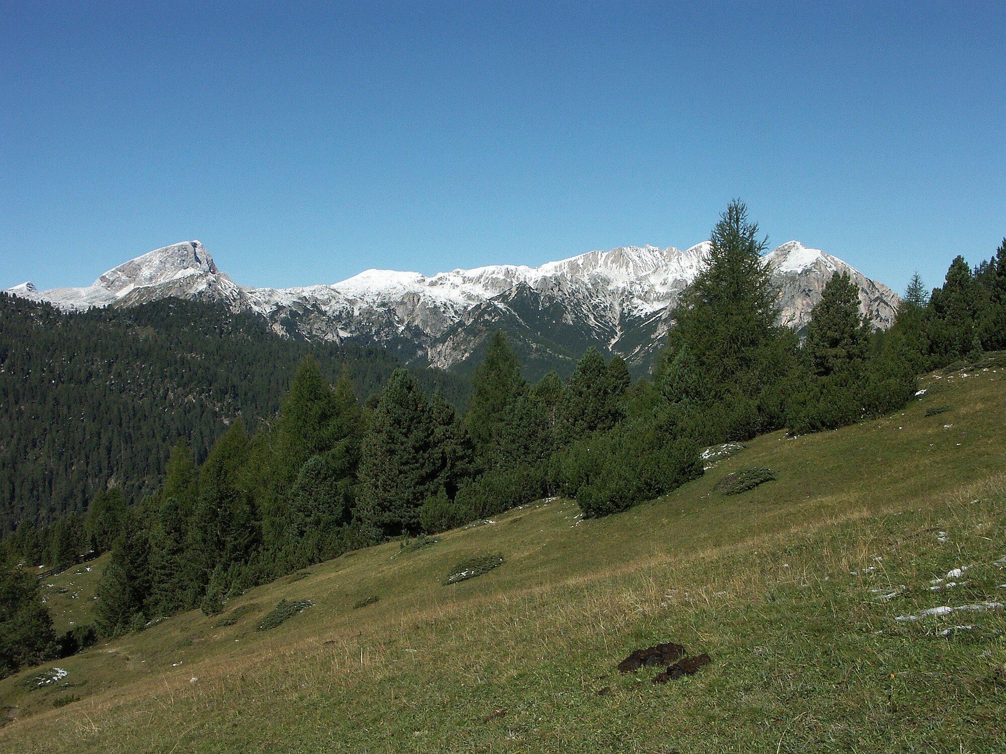 Blick vom höchsten Punkt der Tour zur Plätzwiese mit dem Cristallo ...