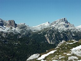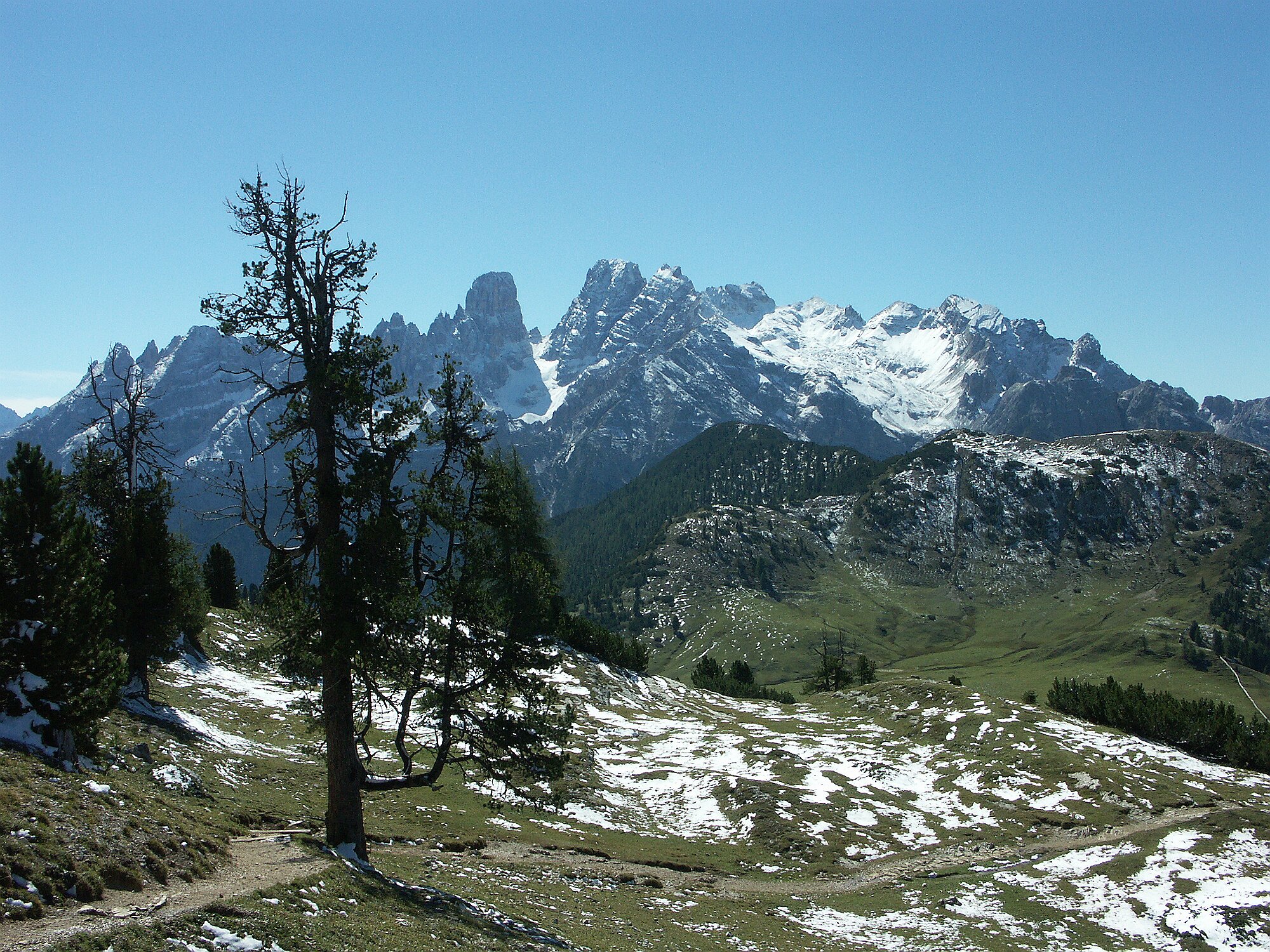 Blick vom höchsten Punkt der Tour zur Plätzwiese mit dem Cristallo ...